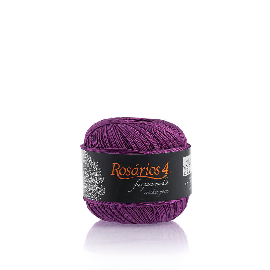 Novelo de fio para crochet roxo da marca Rosários 4 com etiqueta preta