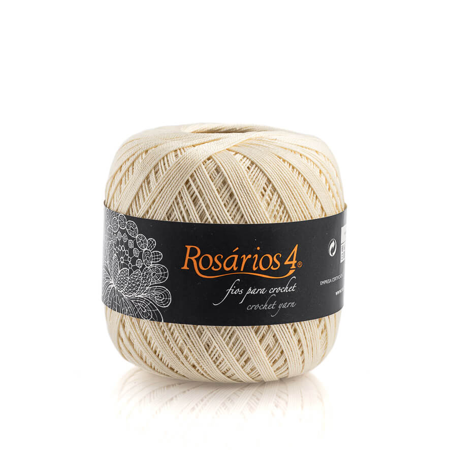 Bobina de fio para crochet creme com etiqueta preta Rosários 4