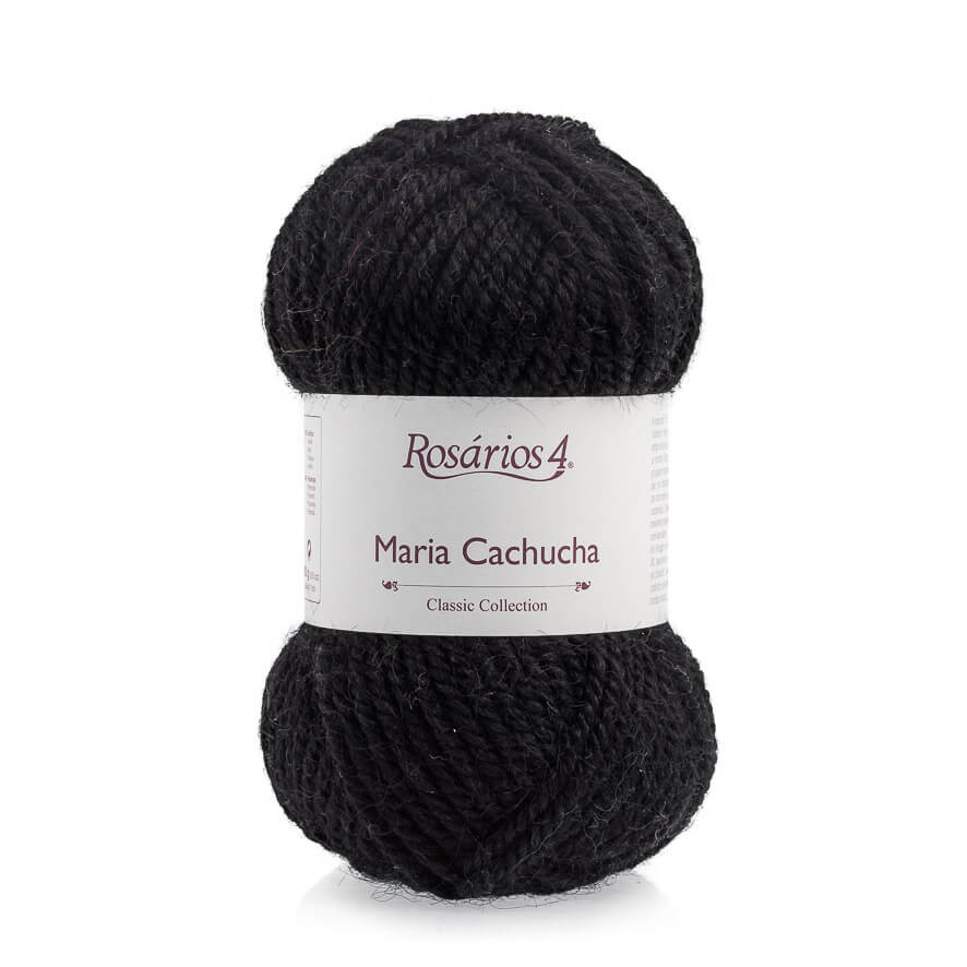 Novelo de lã preta Rosários 4 Maria Cachucha com etiqueta branca