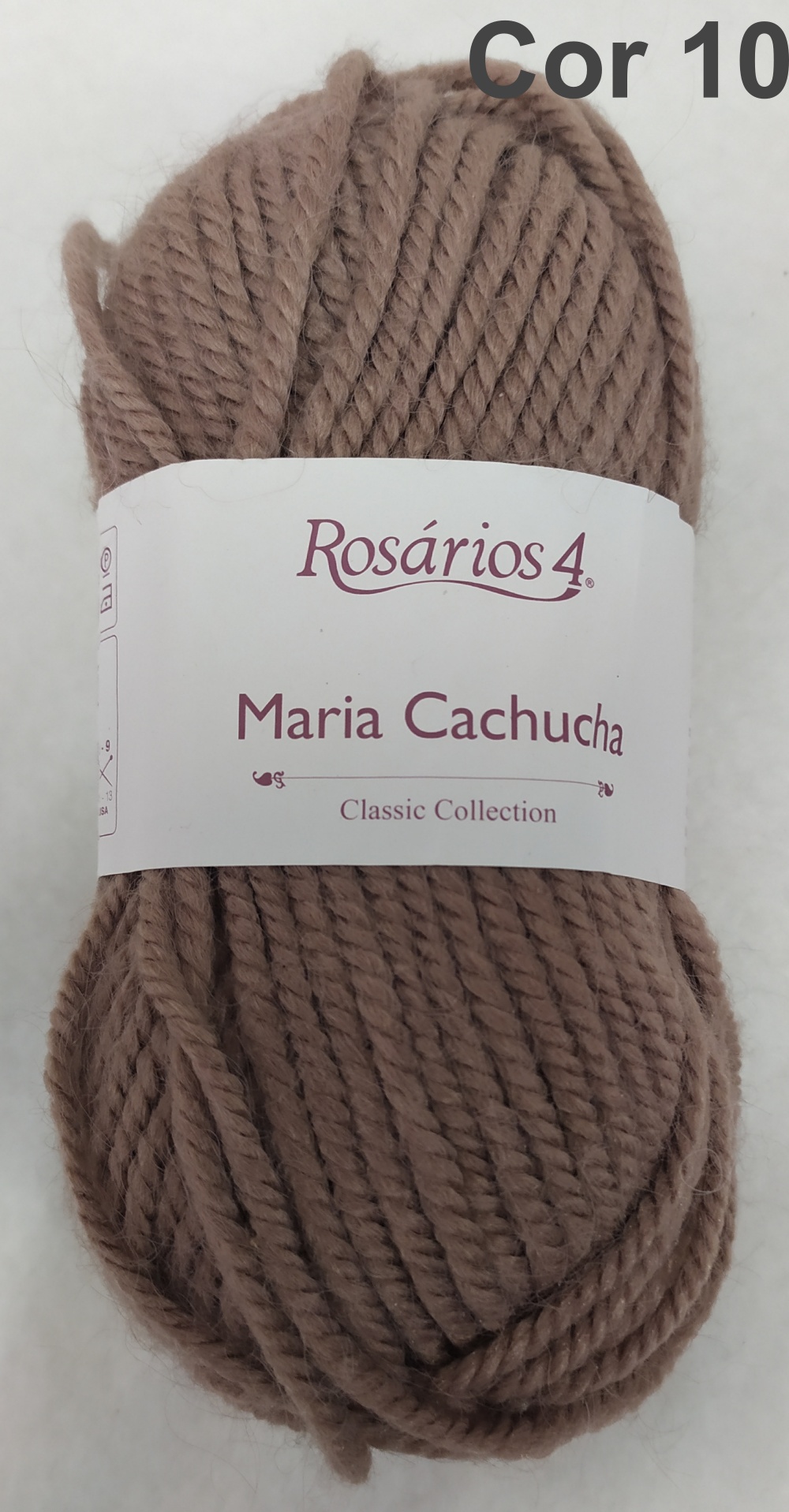 Novelo de lã castanha Rosários 4 Maria Cachucha Classic Collection sobre fundo branco