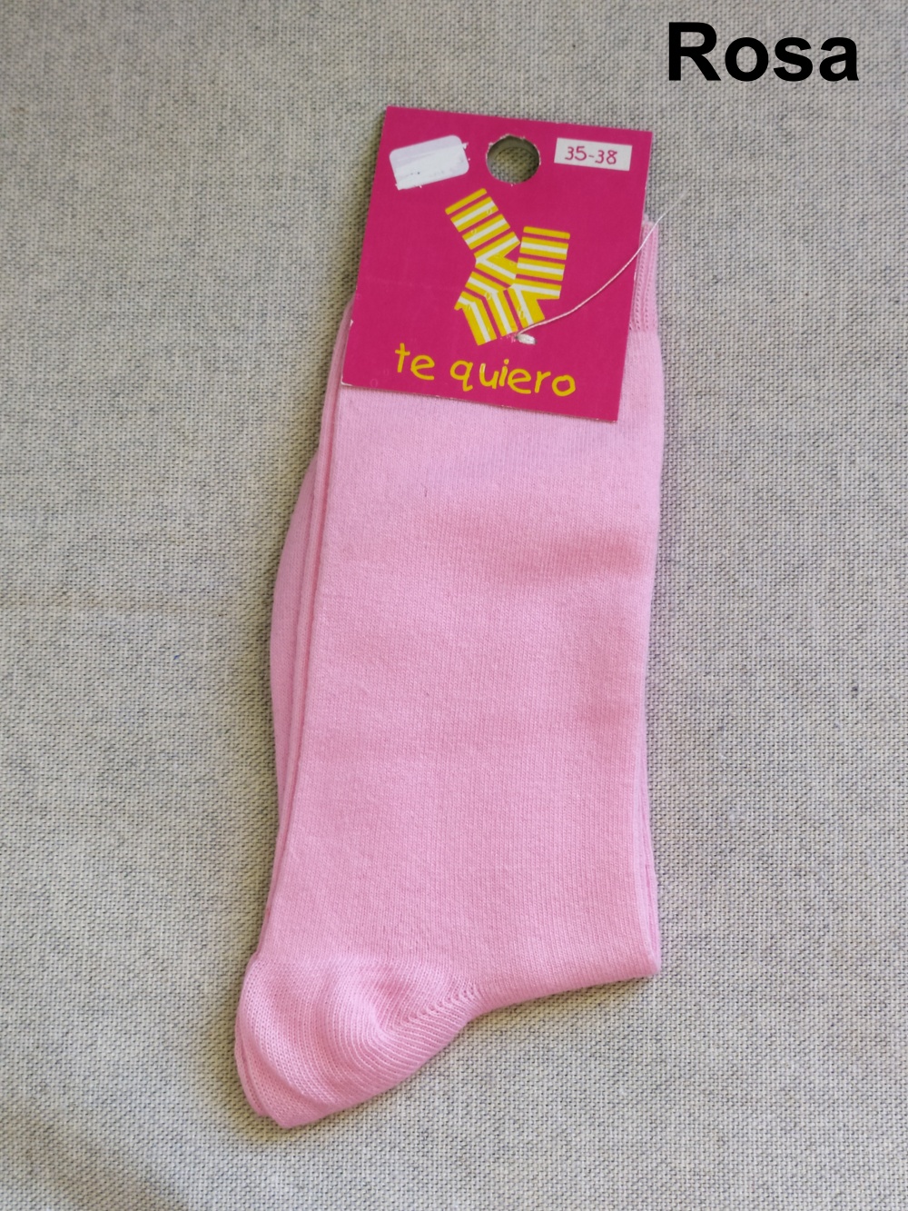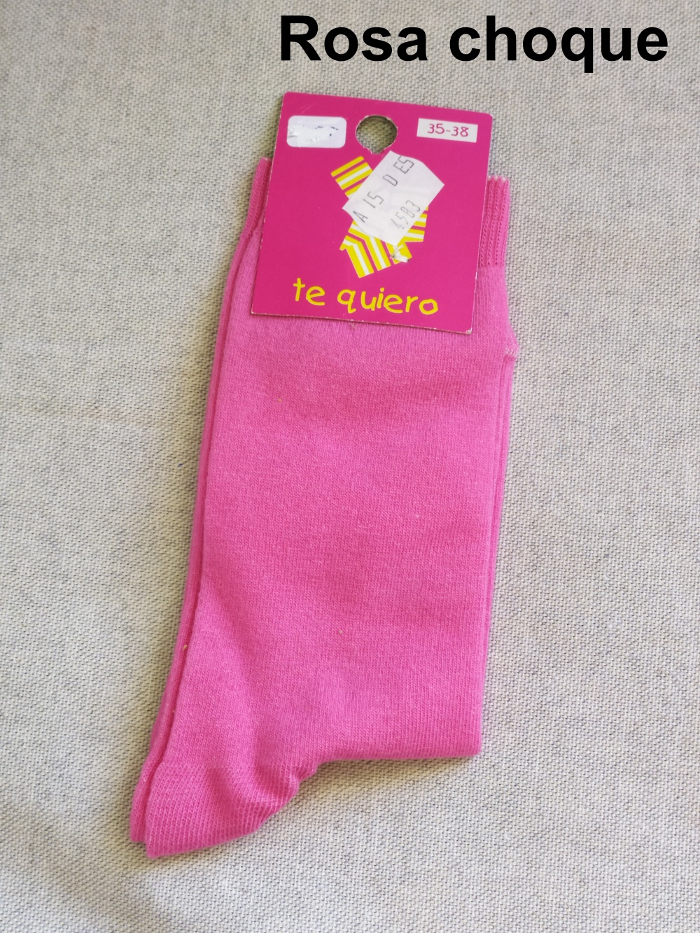 Meia rosa choque com etiqueta rosa 'te quiero' tamanho 35-38 sobre tecido cinzento
