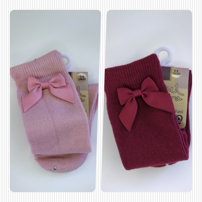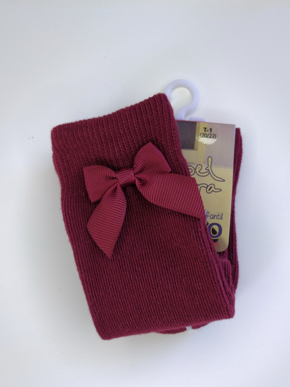 Meia infantil bordô com laço e etiqueta T-1