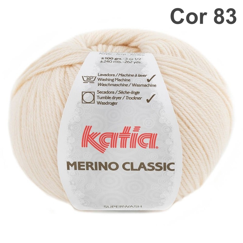 Novelo de lã Katia Merino Classic cor creme clara com etiqueta branca