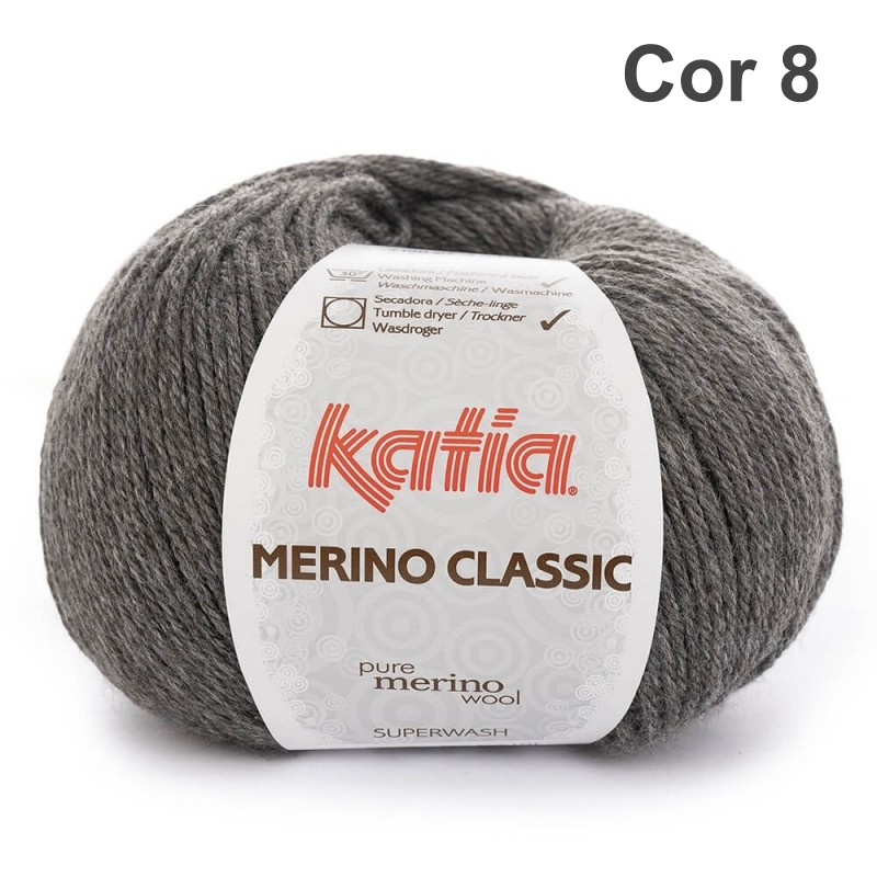 Novelo de lã Katia Merino Classic cinzento escuro com etiqueta branca