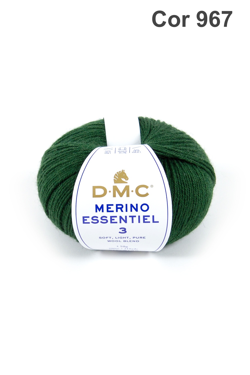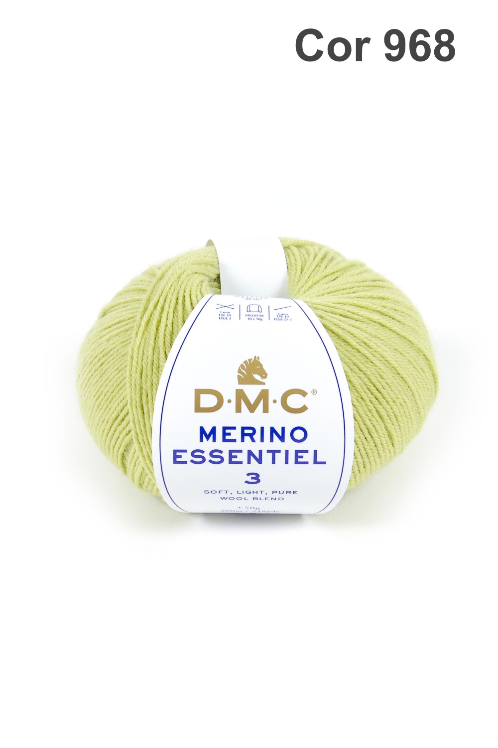 Novelo de lã verde claro D.M.C Merino Essentiel 3 com etiqueta branca