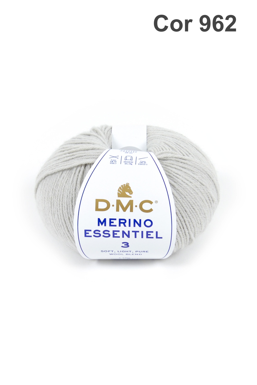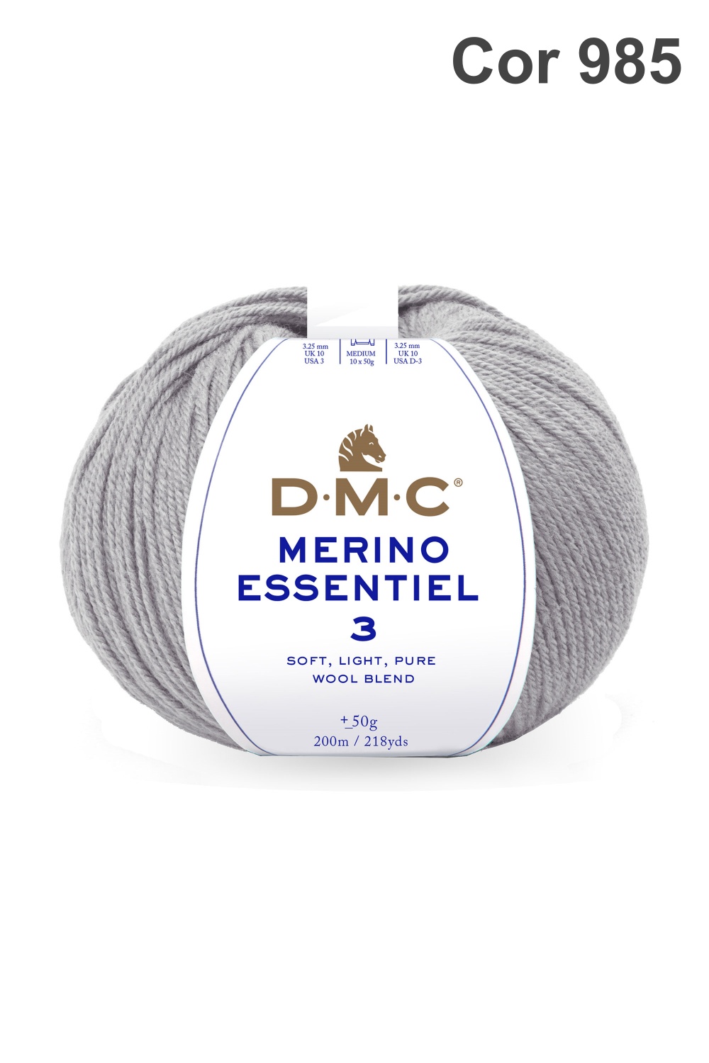 Novelo de lã cinzenta com rótulo DMC Merino Essentiel 3
