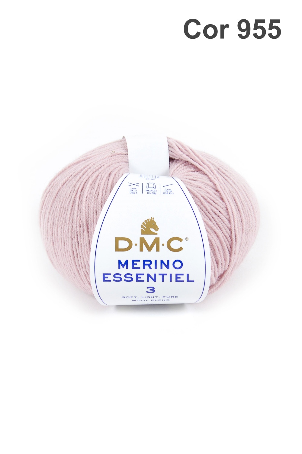 Novelo de lã rosa claro D.M.C Merino Essentiel 3 com etiqueta