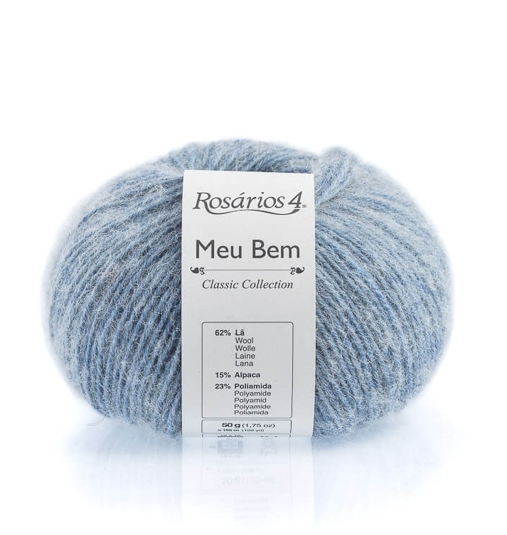 Novelo de lã azul claro Rosários 4 Meu Bem Classic Collection com etiqueta branca