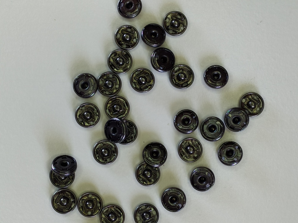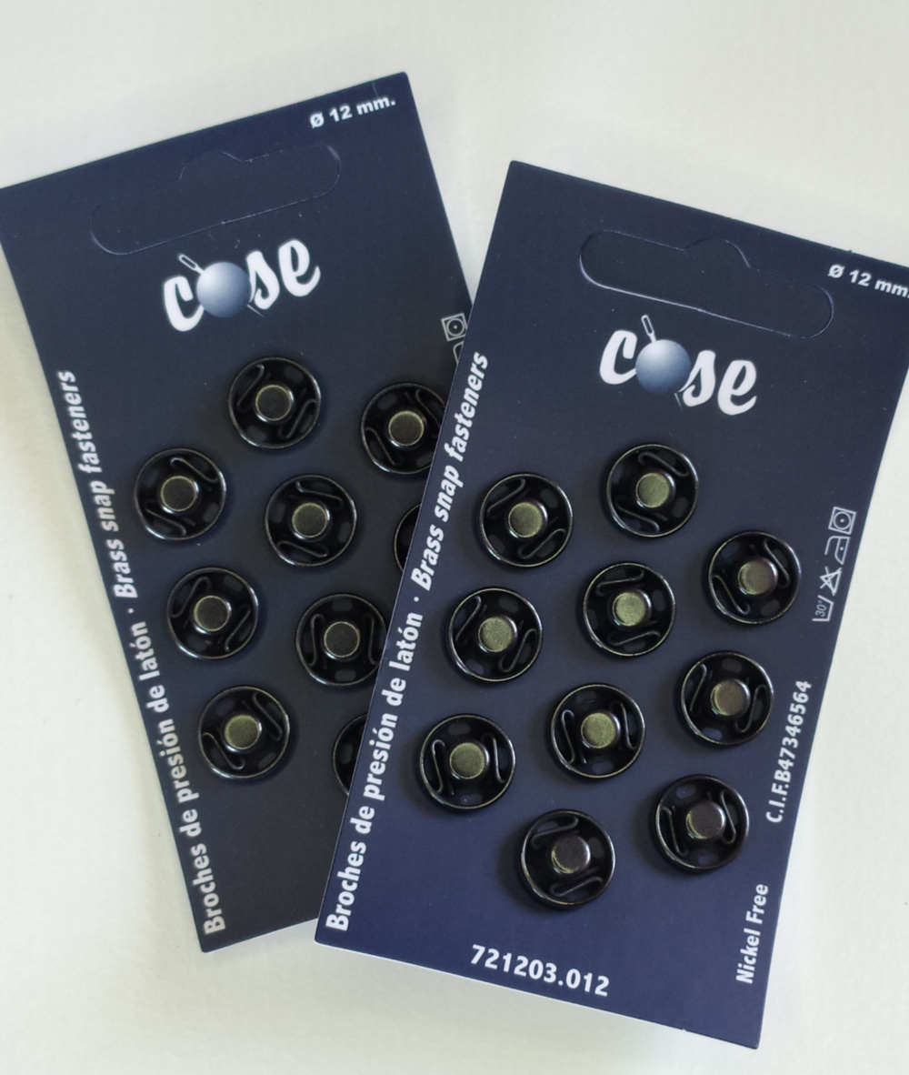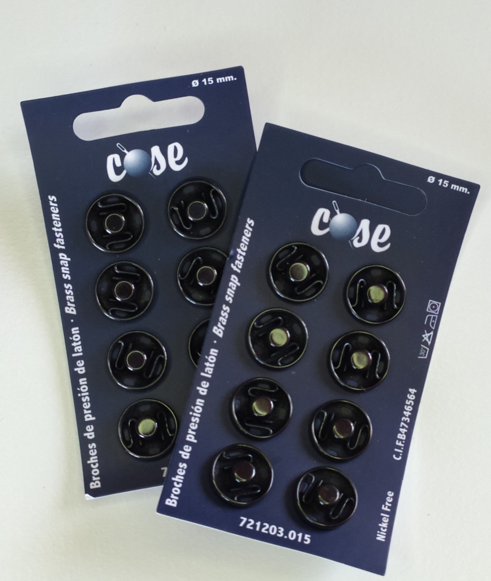 Cartões pretos com botões de pressão em latão prateados