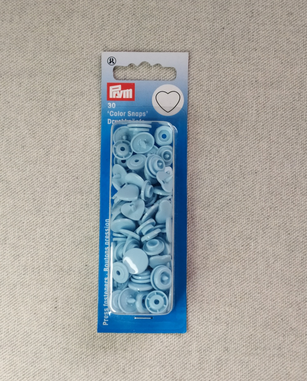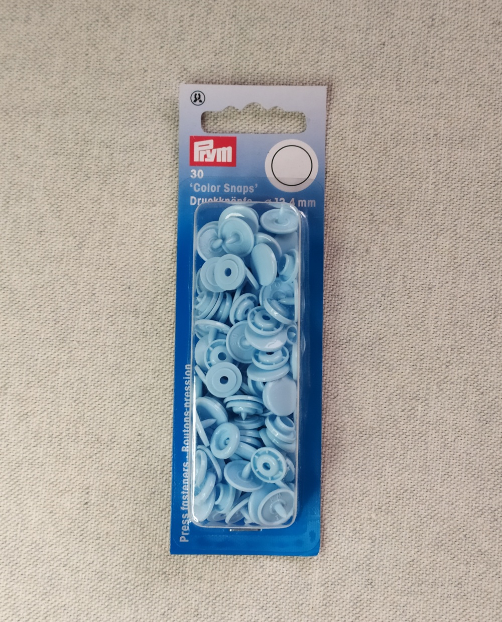 Pacote de 30 botões de pressão azuis marca Prym em embalagem azul