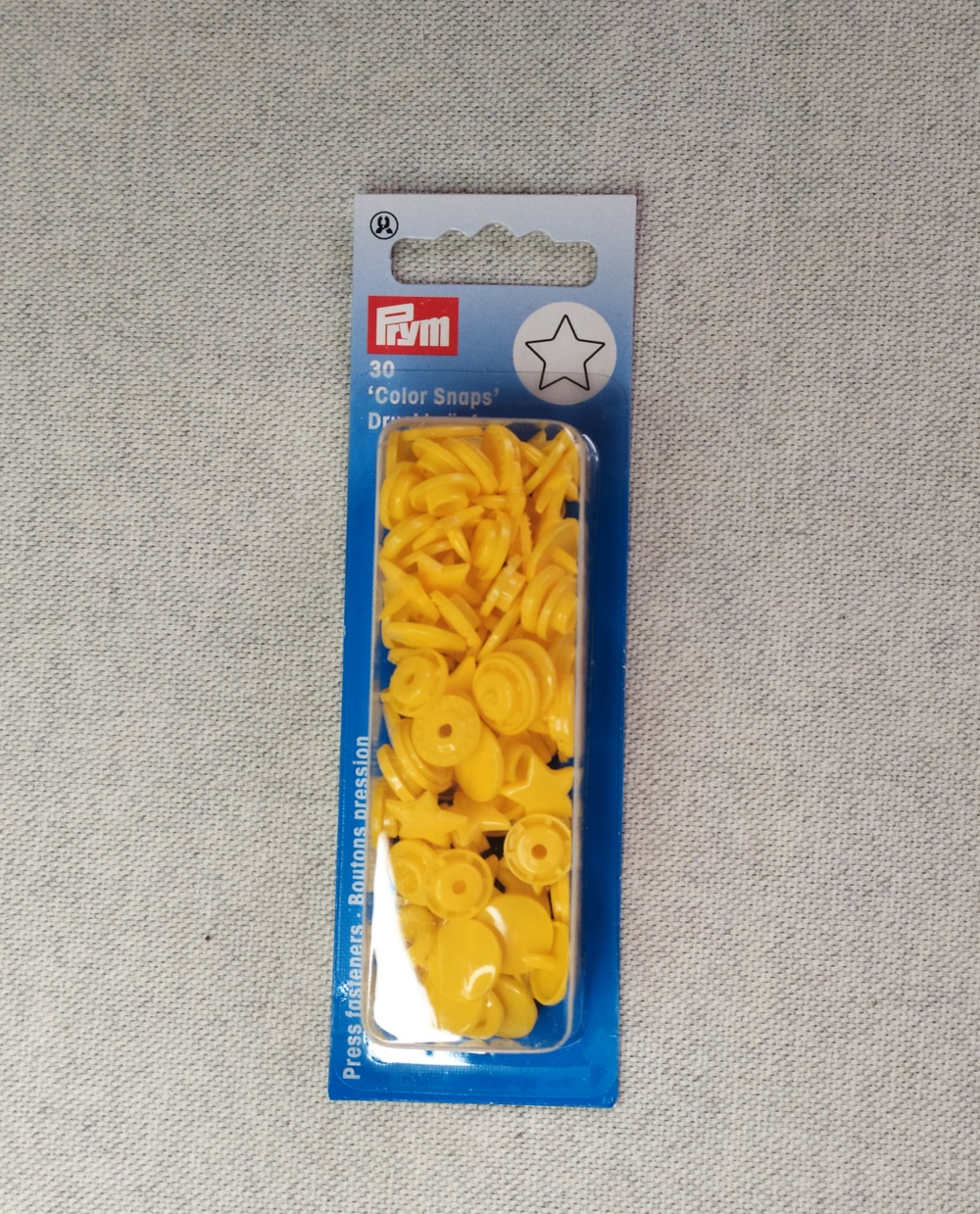 Pacote de botões de pressão amarelos Prym em embalagem azul