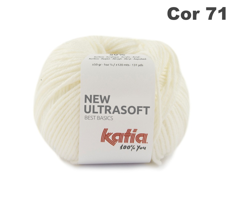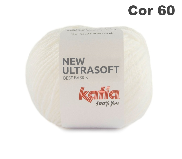 Novelo de lã branca Katia New Ultrasoft com etiqueta