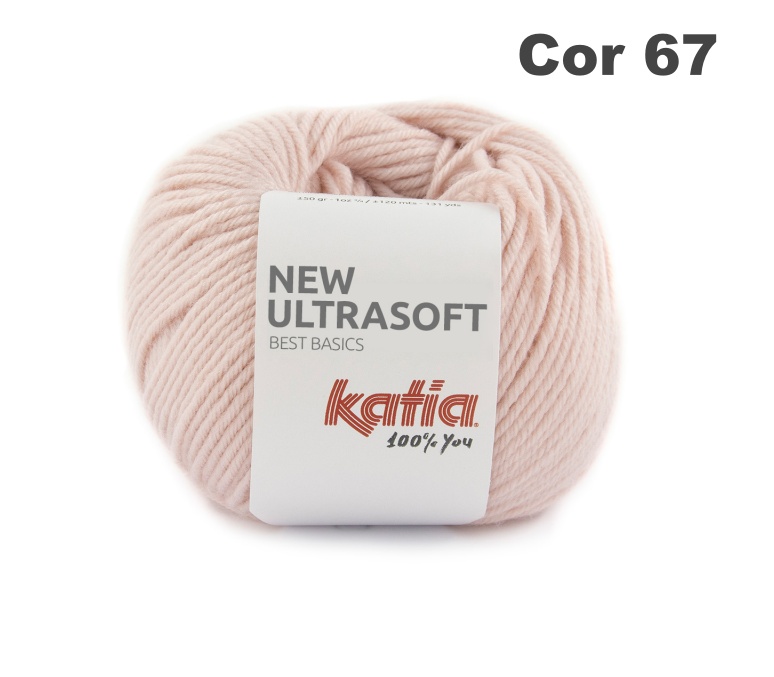 Novelo de lã rosa claro Katia New Ultrasoft cor 68
