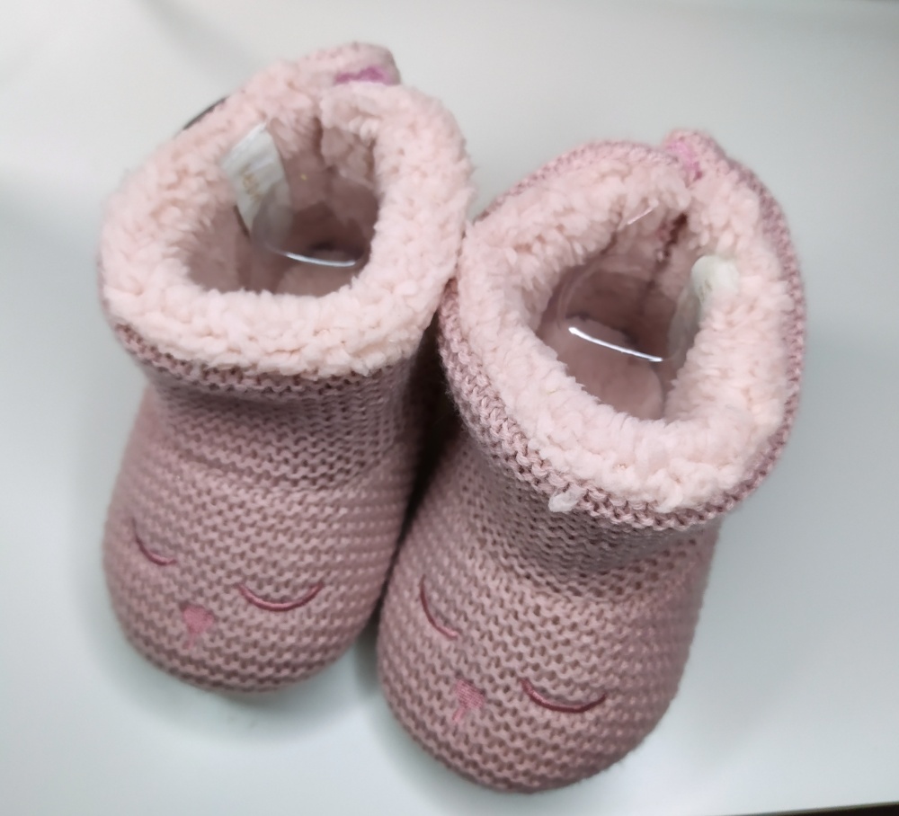 Pantufas cor-de-rosa para bebé com interior felpudo e bordado de carinha de gato