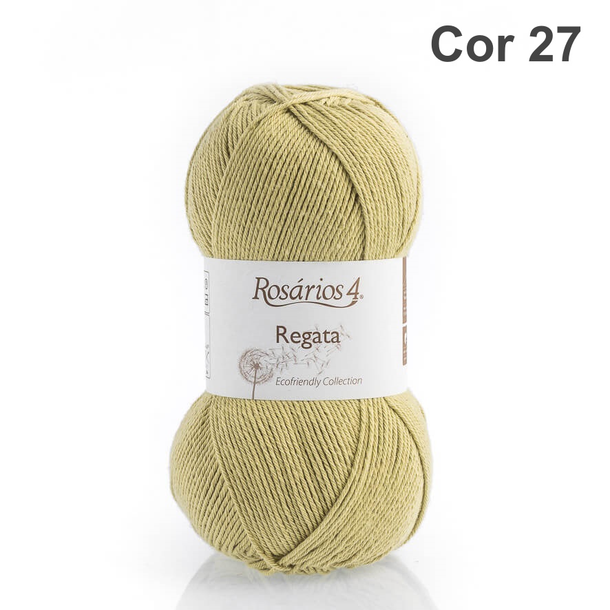 Novelo de lã bege claro Rosários 4 Regata cor 27 com etiqueta branca