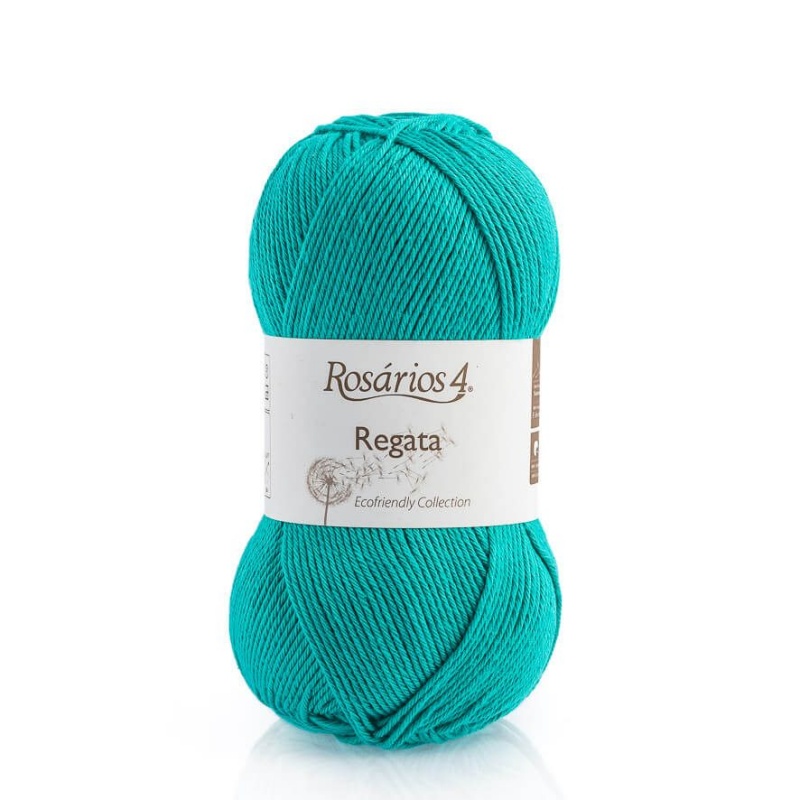 Novelo de lã azul turquesa Rosários 4 Regata com etiqueta branca