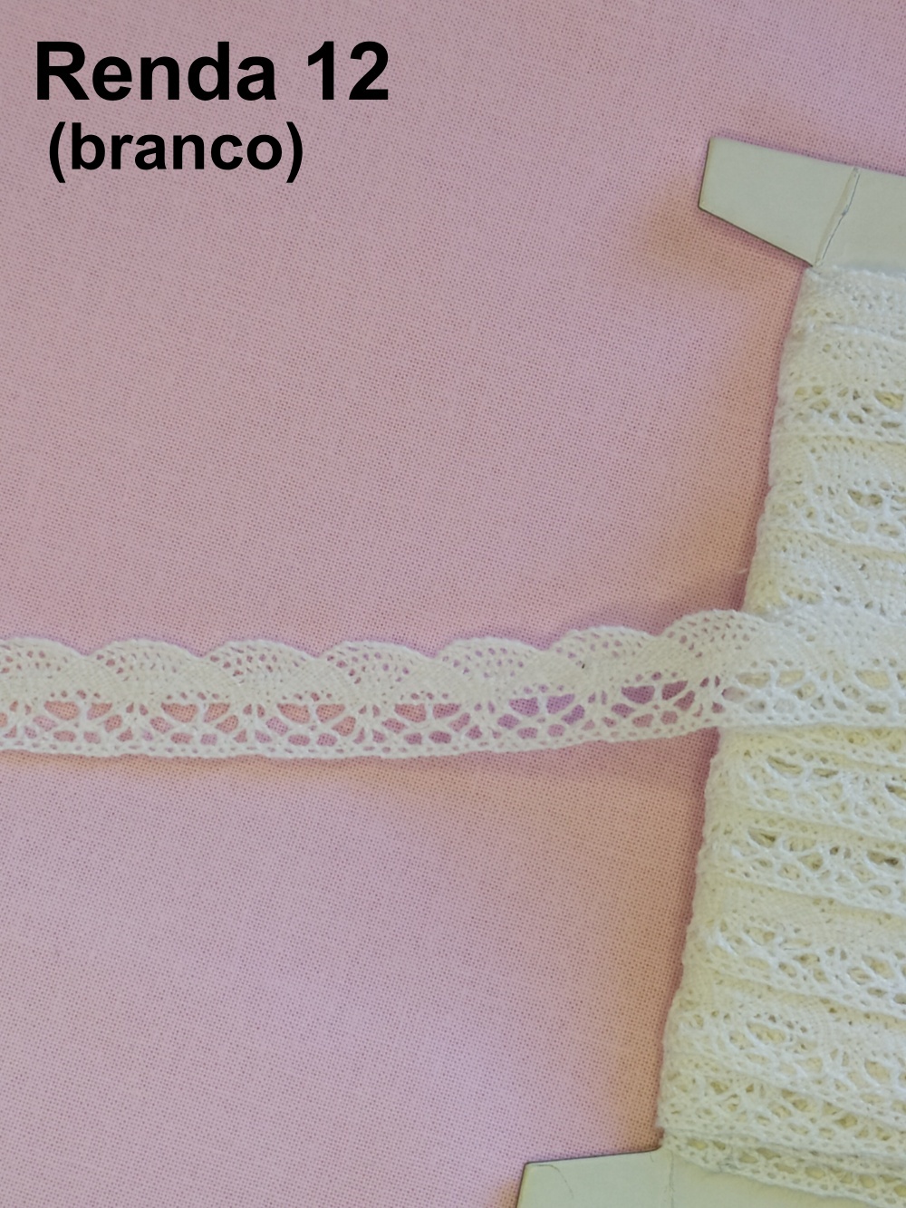 Rolo de renda branca sobre fundo rosa com texto 'Renda 12 (branco)'