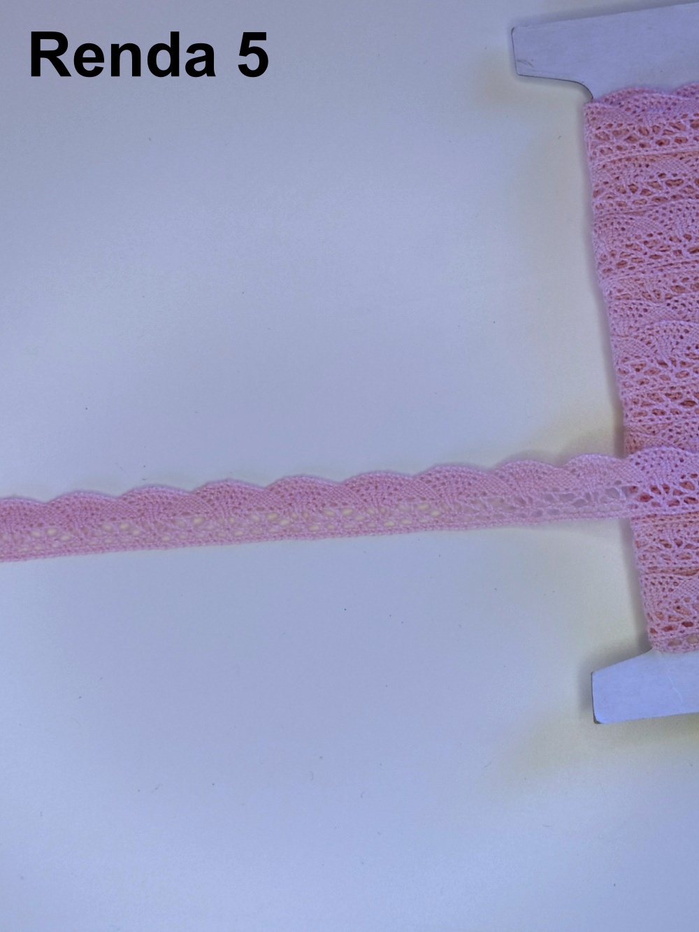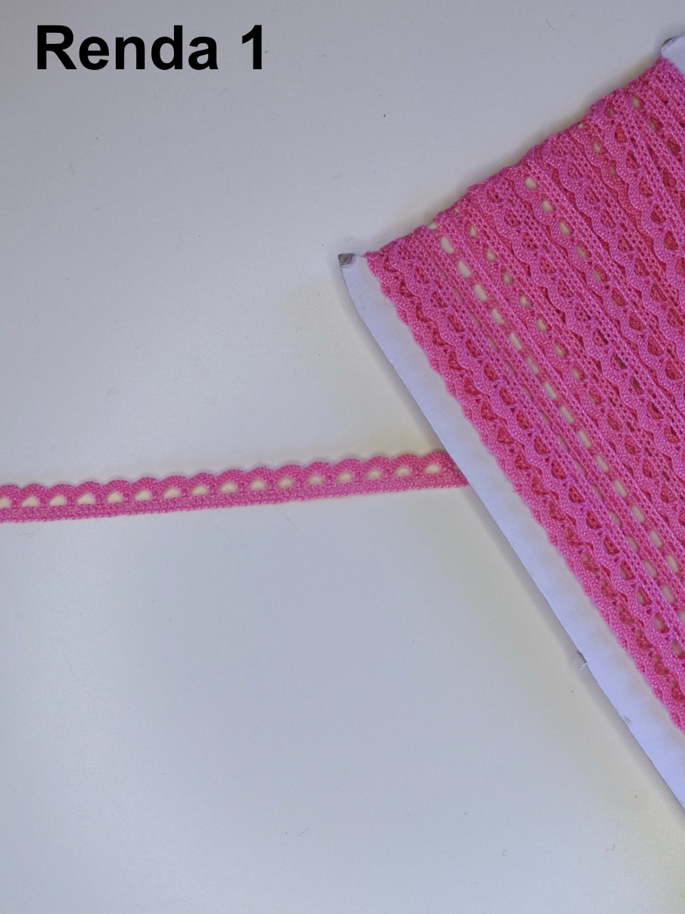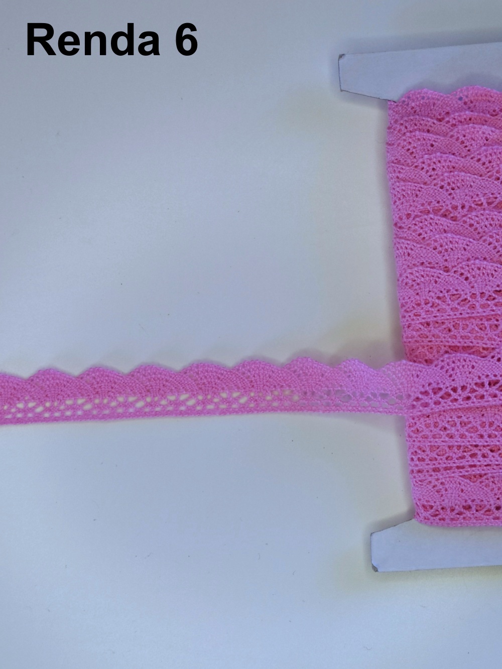 Rolo de renda rosa com padrão ondulado e texto 'Renda 6'