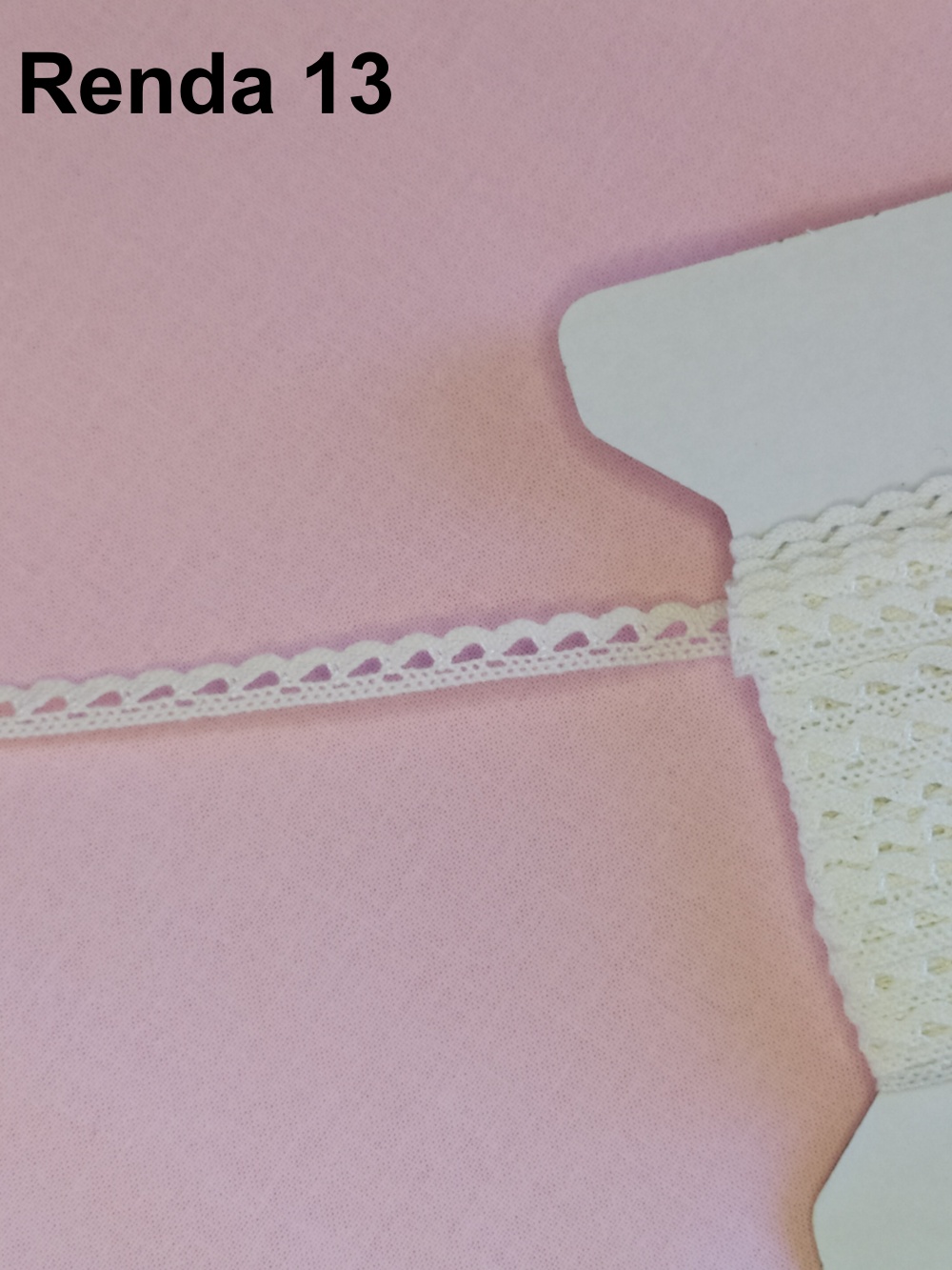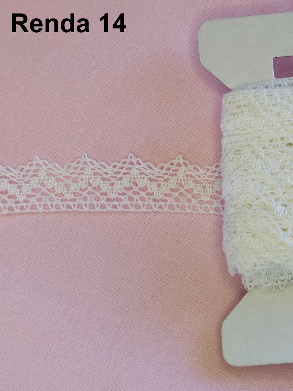 Renda branca delicada sobre fundo rosa com texto 'Renda 14'
