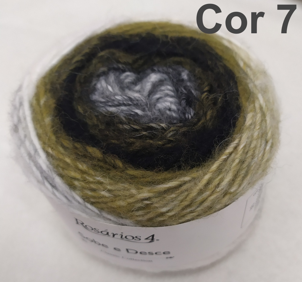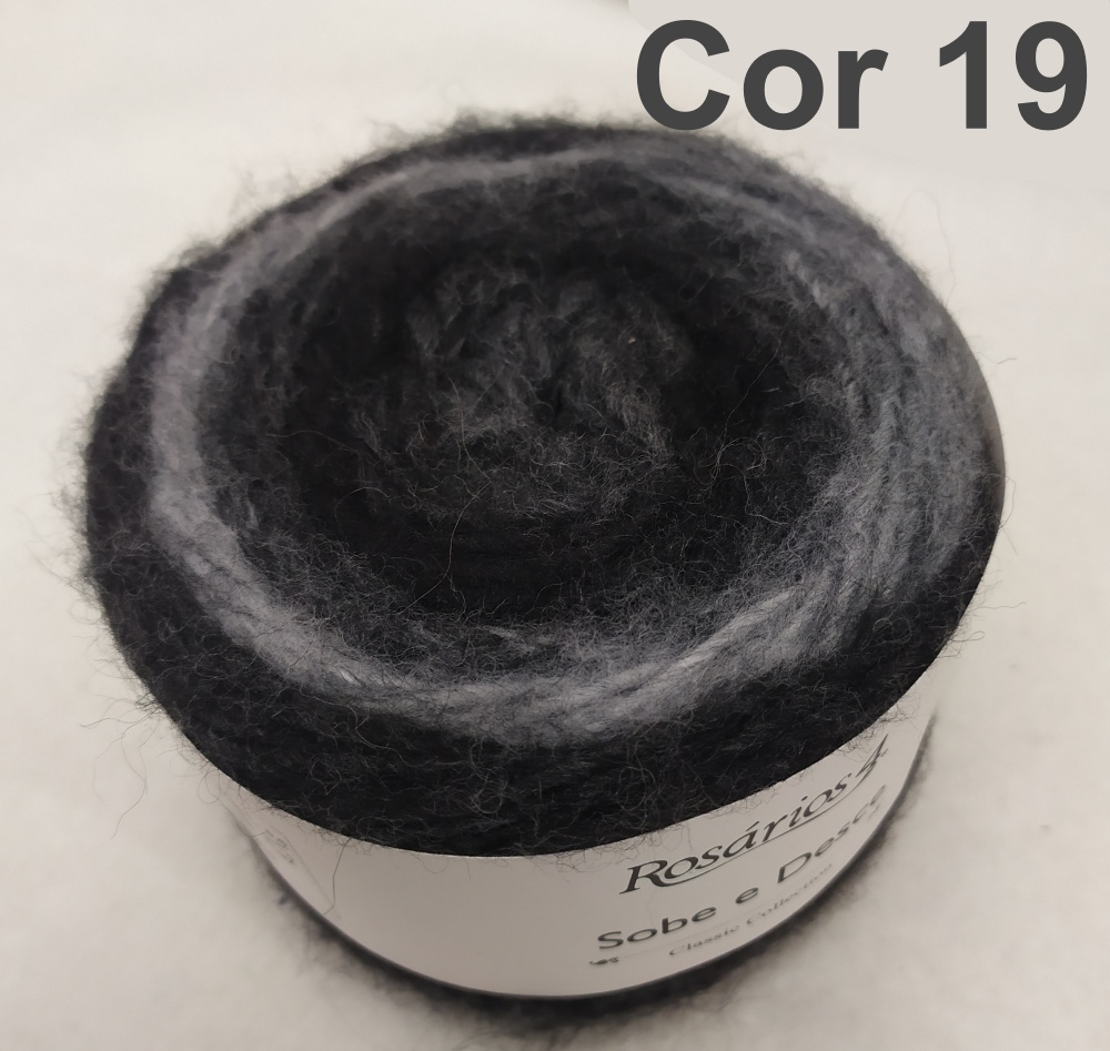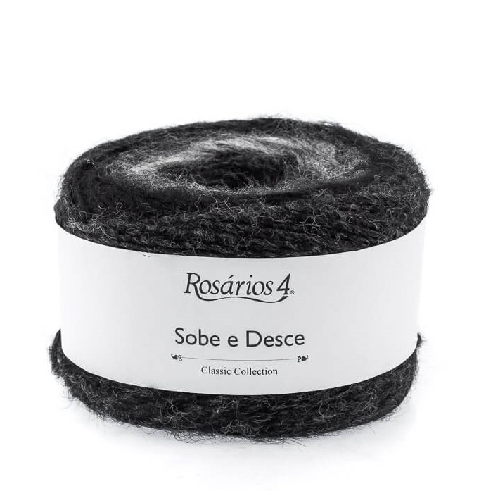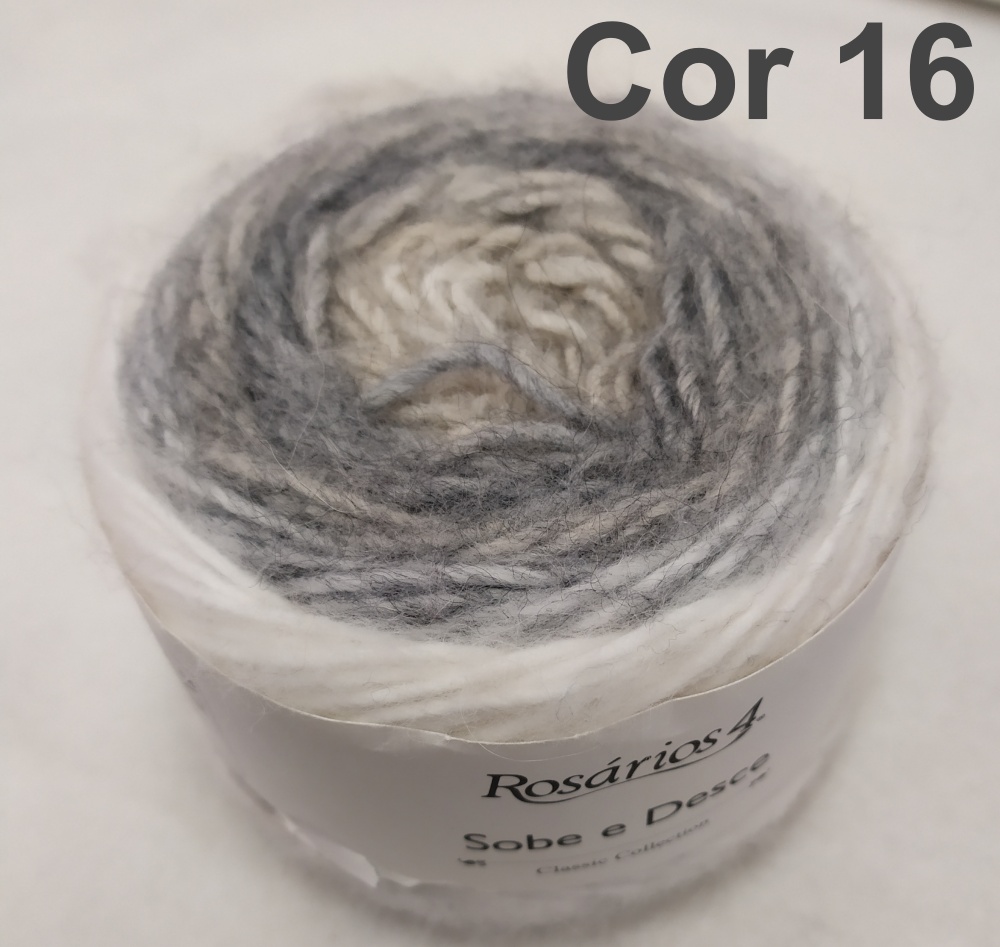 Novelo de lã cinzenta e branca Rosários 4 Sobe e Desce Cor 16