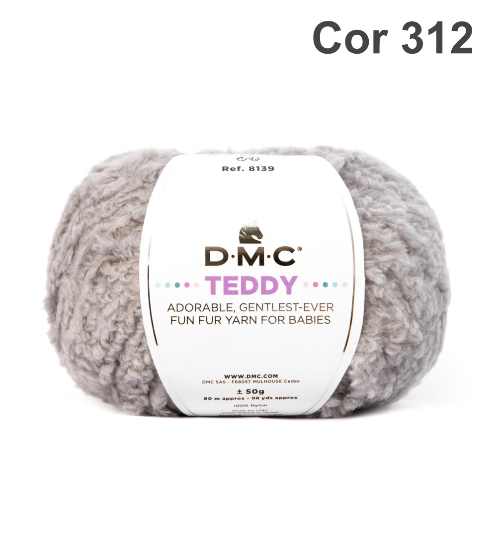 Novelo de fio DMC Teddy cor 312 cinza claro com etiqueta