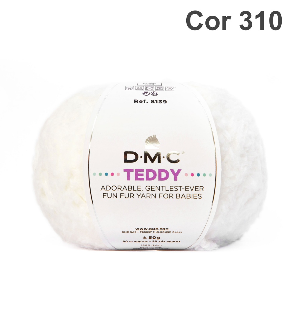 Novelo de lã branca DMC TEDDY Cor 310 com etiqueta central