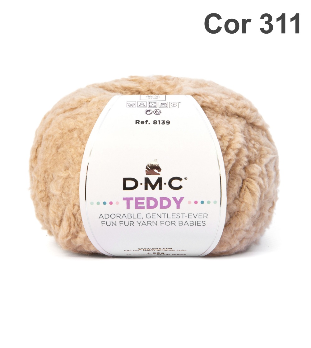 Novelo de lã bege claro D.M.C Teddy com etiqueta branca
