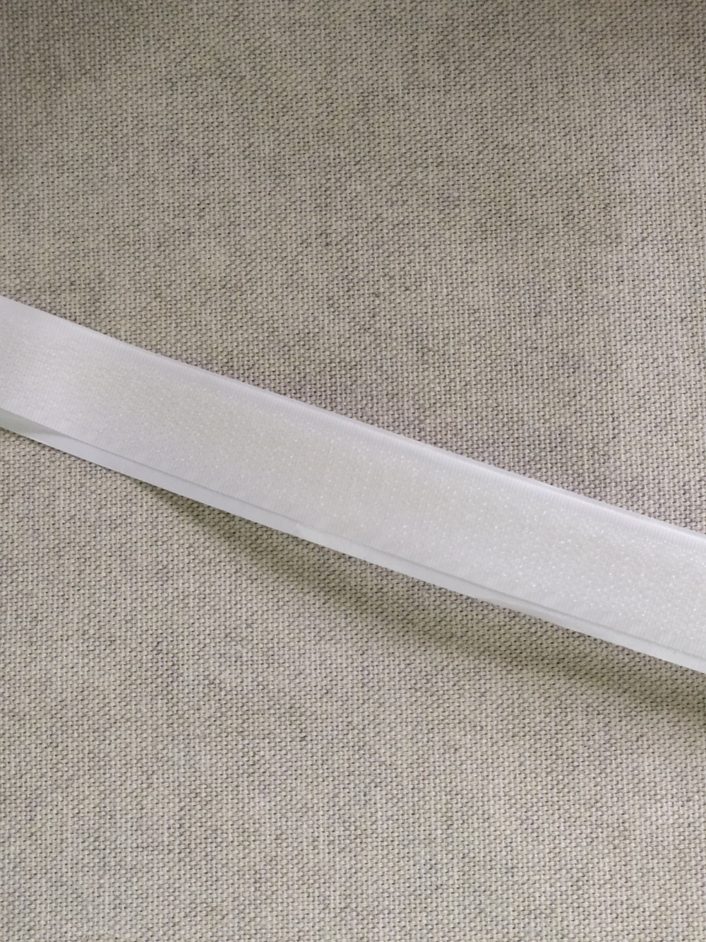 Fita branca lisa sobre superfície têxtil bege