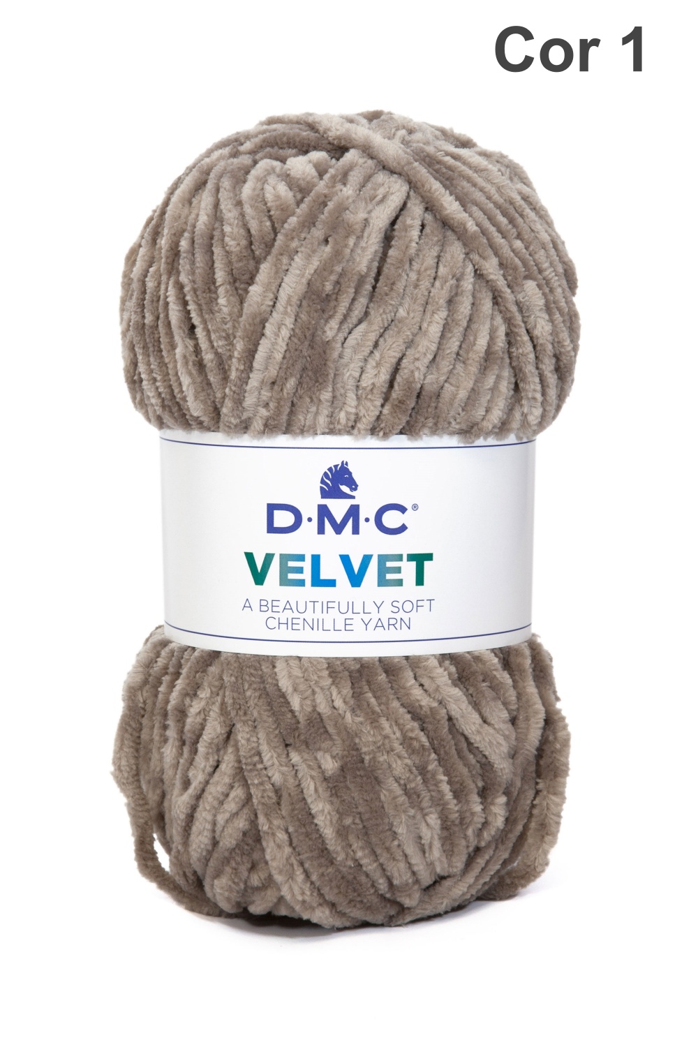 Novelo de fio chenille D.M.C VELVET castanho claro com etiqueta
