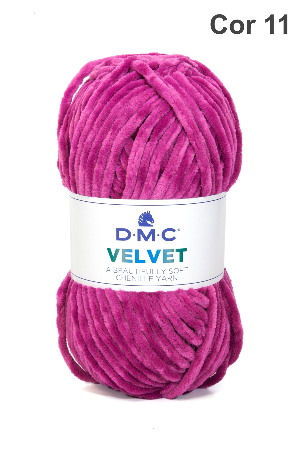 Novelo de lã chenille fúcsia com etiqueta DMC Velvet