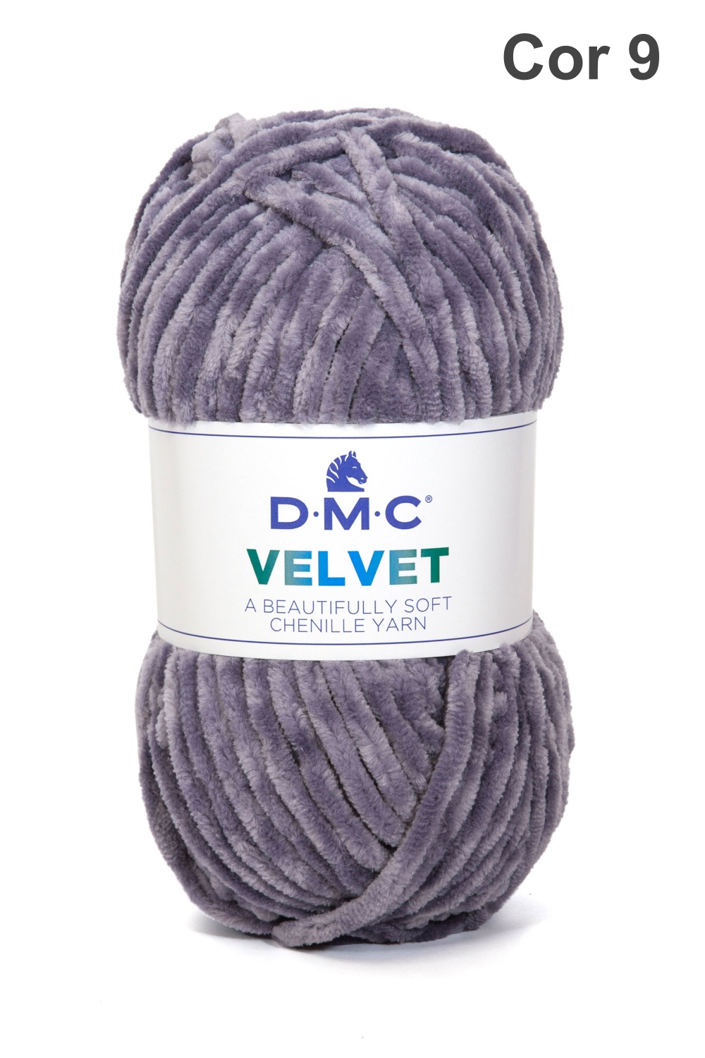 Novelo de fio chenille cinza-azulado D.M.C Velvet Cor 9