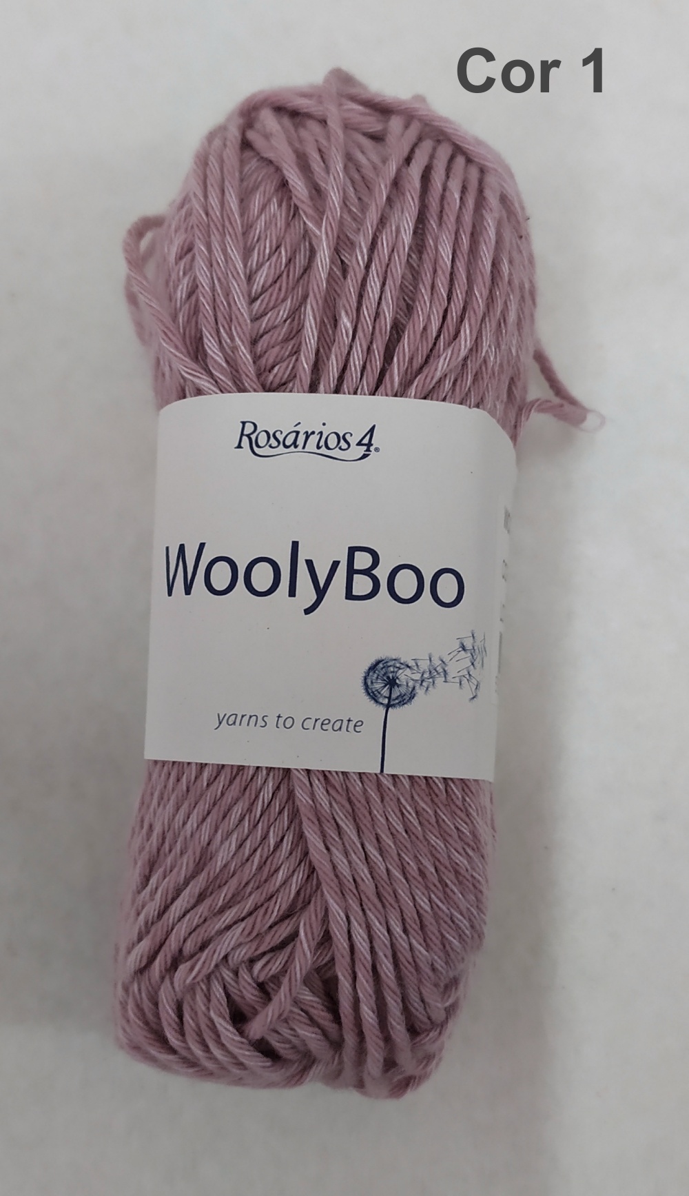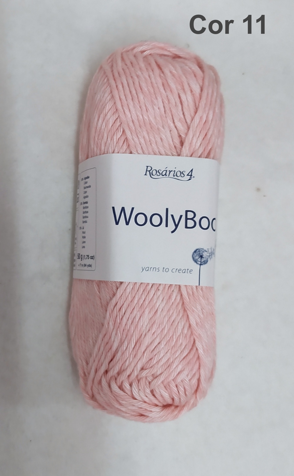 Novelo de lã cor de rosa claro Rosários 4 com etiqueta WoolyBook