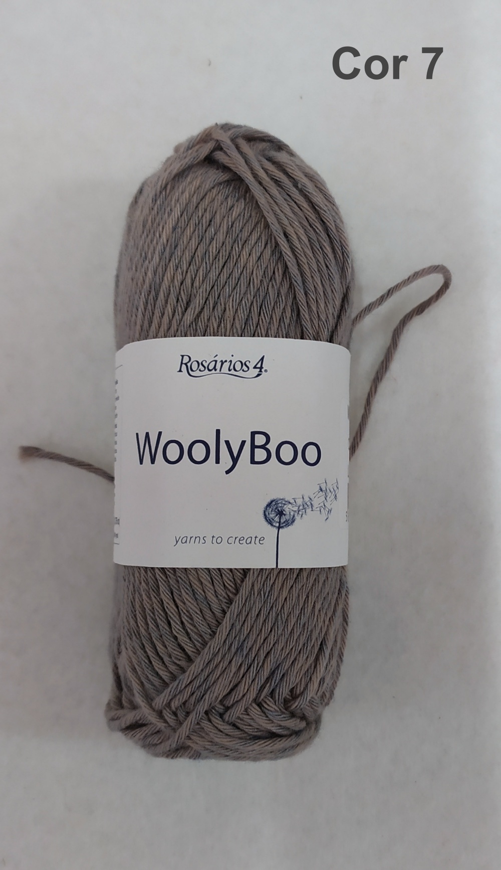 Novelo de lã cinza castanho claro Rosários 4 WoolyBoo Cor 7