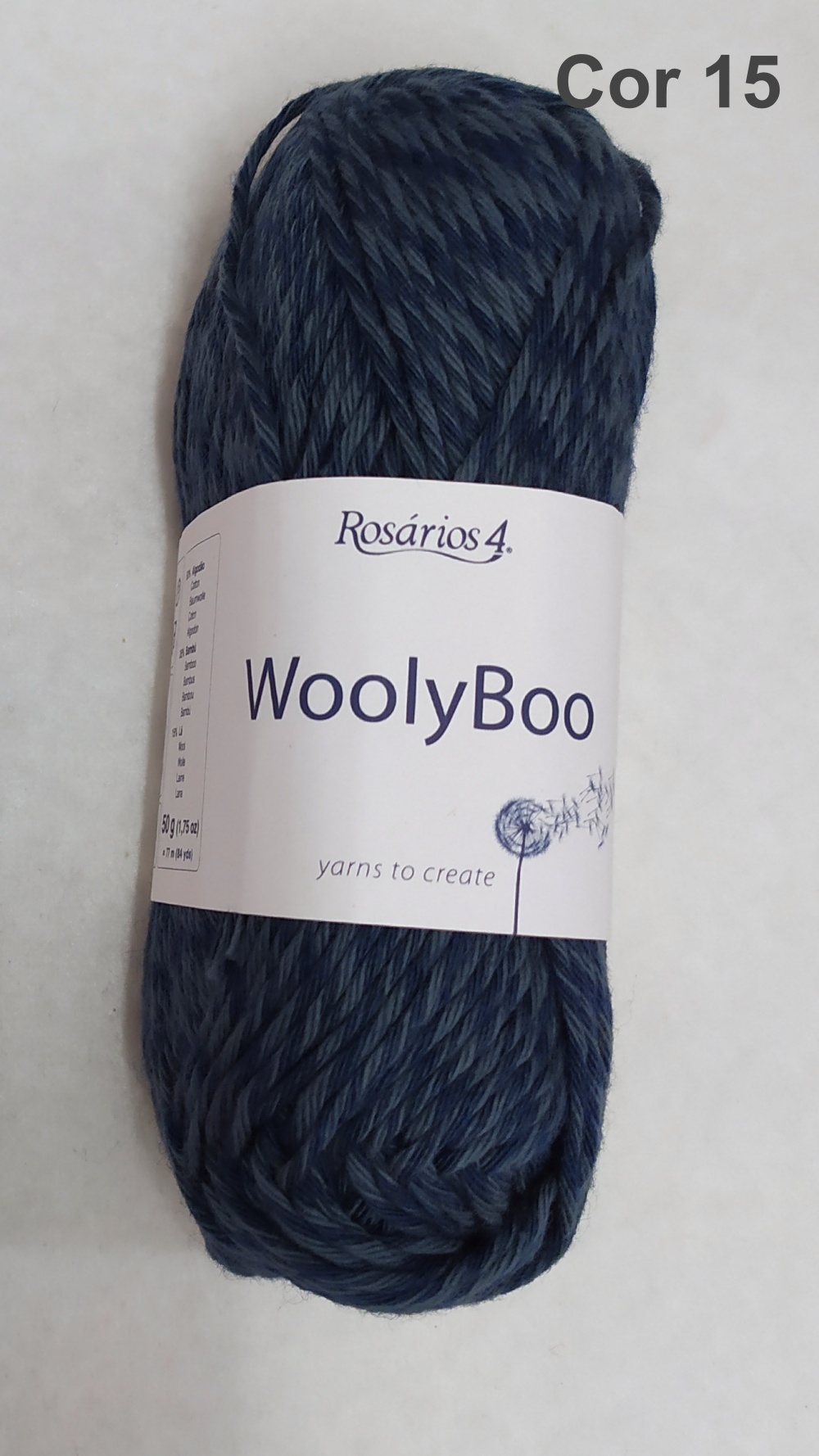 Novelo azul escuro de lã WoolyBoo com etiqueta branca da Rosários 4
